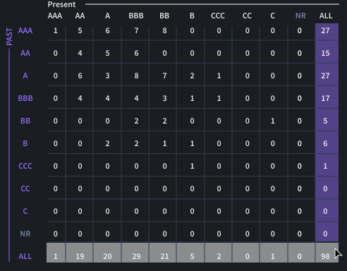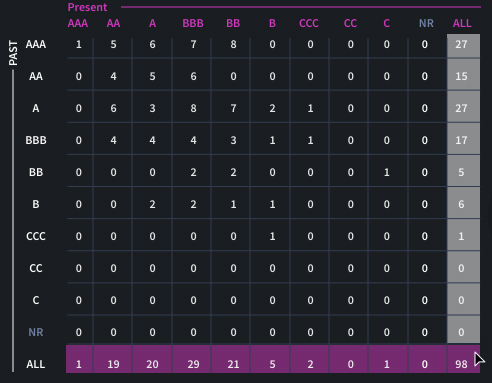 Show the aggregate PDs of the selected portfolio, global coverage and other selections